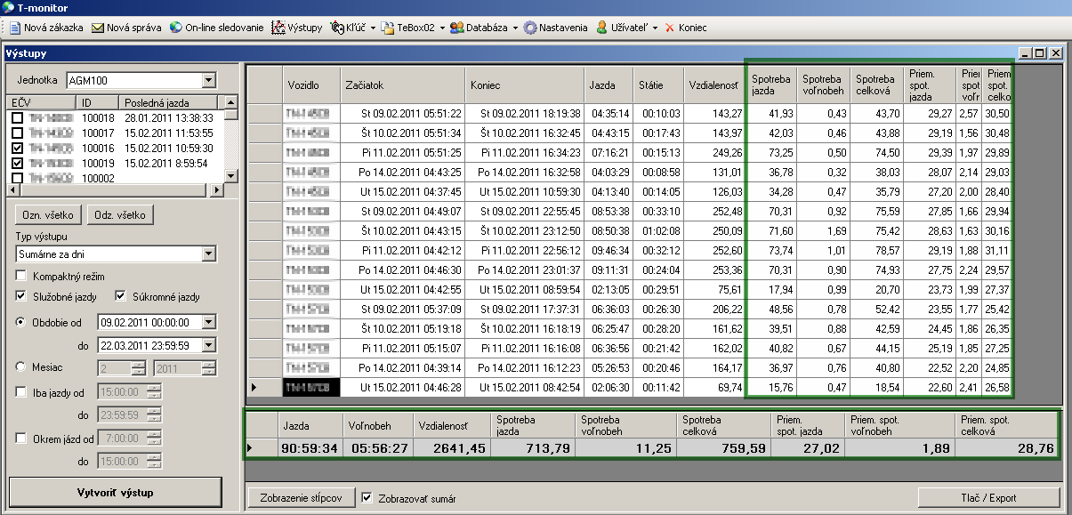 - možnosť relevantného vyhodnocovania skutočnej a priemernej spotreby paliva aj na kratšie úseky.